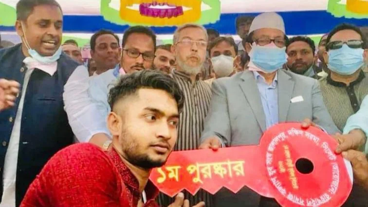 পরে বিজয়ীদের হাতে ১ম পুরস্কার মোটর সাইকেলের চাবি তুলে দেন প্রধান অতিথি মাহমুদ উস-সামাদ চৌধুরী।