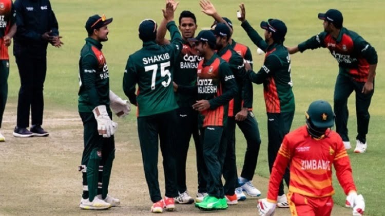 টস জিতে আগে ব্যাট করে পাঁচ উইকেটে ১৯৩ রান সংগ্রহ করে স্বাগতিকরা। দলের হয়ে তাদিওয়ানাশে মারুমানি ২৭, ওয়েসলি মাধেভেরে ৫৪ ও রেগিস চাকাভা ৪৮ রান করেন। সফরকারীদের হয়ে সৌম্য সরকার দুটি, সাকিব আল হাসান, সাইফুদ্দিন ও শরিফুল ইসলাম একটি করে উইকেট নেন।