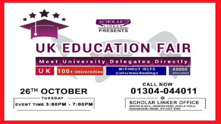 সিলেট অফিস : IELTS ছাড়া যারা যুক্তরাজ্যে পড়াশোনা ও সাথে কাজ করার সুযোগ খুঁজছেন, তাদের জন্য সুখবর নিয়ে এলো স্কলার লিংকার। আগামীকাল মঙ্গলবার (২৬ অক্টোবর) ‘ইউকে এডুকেশন ফেয়ার’ এর আয়োজন করেছে প্রতিষ্ঠানটি। সর্বোচ্চ ২০ বছরের স্টাডি গ্যাপ নিয়েও যুক্তরাজ্য যেতে সুযোগ ও নানা তথ্য জানা যাবে এই মেলা থেকে।