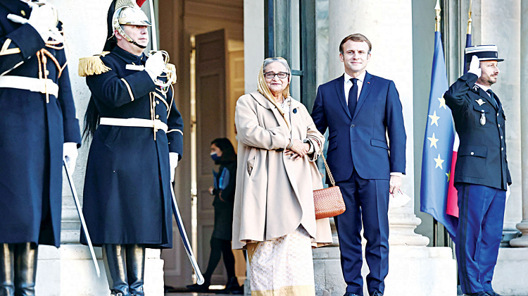 প্যারিসের এলিসি প্যালেসে প্রধানমন্ত্রীকে উষ্ণ অভ্যর্থনা