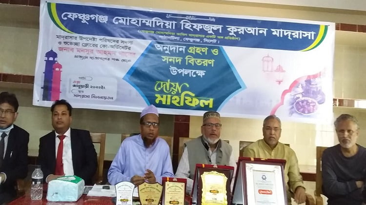 ফেঞ্চুগঞ্জ মোহাম্মদিয়া হিফজুল কুরআন মাদরাসায় অনুদান গ্রহণ, সনদ বিতরণ ও দোয়া মাহফিল অনুষ্ঠিত