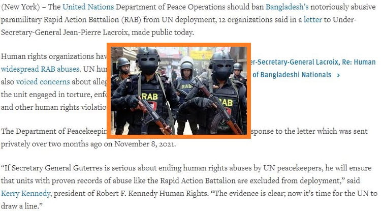 জাতিসংঘের শান্তিরক্ষা মিশনে র্যাবকে বাদ দিতে ১২ সংস্থার চিঠি