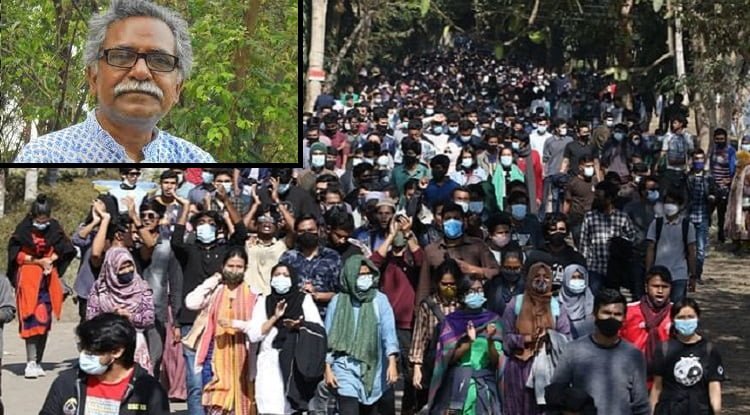 সোমবার (২৪ জানুয়ারি) সিলেটের শাহজালাল বিজ্ঞান ও প্রযুক্তি বিশ্ববিদ্যালয় উপাচার্যের পদত্যাগের দাবিতে শিক্ষার্থীদের আন্দোলনে সমর্থন জানিয়ে প্রতীকী অনশন কর্মসূচি পালন করেন বিভিন্ন সরকারি–বেসরকারি বিশ্ববিদ্যালয়ের শিক্ষকেরা। দুপুর ১২টায় শুরু হয়ে বেলা ৩টা পর্যন্ত ঢাকা বিশ্ববিদ্যালয়ের অপরাজেয় বাংলার পাদদেশে কর্মসূচিটি পালন করা হয়। কর্মসূচিতে অংশ নিয়ে অধ্যাপক আনু মুহাম্মদ এসব কথা বলেন।