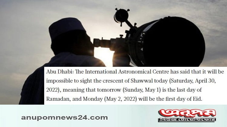 ওই অঞ্চলে রোববার রমজান মাসের ৩০ দিন পূরণ হবে এবং এর পরের দিন ২ মে উদযাপিত হবে ঈদুল ফিতর। আইএসির বিবৃতির বরাতে গালফ নিউজ এ তথ্য জানিয়েছে।