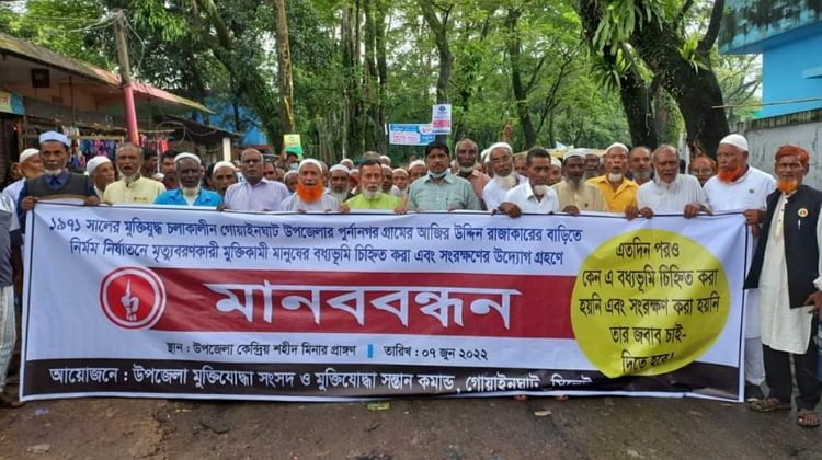 গোয়াইনঘাটে বধ্যভূমি চিহ্নিত এবং সংরক্ষণের দাবীতে মানববন্ধন অনুষ্ঠিত