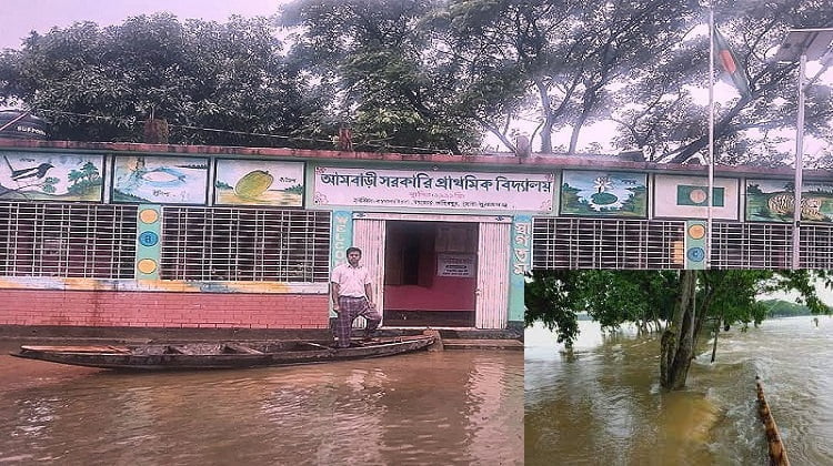 একই উপজেলার উত্তর বড়দল ইউনিয়নের আমবাড়ি সরকারী প্রাথমিক বিদ্যালয়ে শিক্ষক তাজুল ইসলাম জানান, টানা বৃষ্টি ও নেমে আসা পাহাড়ী ঢলের পানিতে প্লাবিত চারপাশ। বিদ্যালয় আঙ্গিনায় পানি, বিদ্যালয় সংযোগ সবকটি রাস্তা পানির নিচে। জীবন ঝুঁকি নিয়ে কয়েকজন শিক্ষার্থীরা বিদ্যালয়ে আসে।
