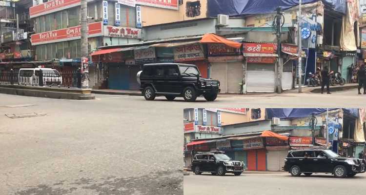 সিলেট মহানগরের জিন্দাবাজার সড়ক ধরে এগিয়ে যাচ্ছে প্রধানমন্ত্রীর গাড়ি বহর। ছবি: অনুপমনিউজ