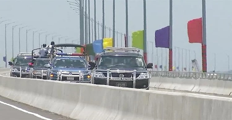 নিজ হাতে টোল দিয়ে পদ্মা সেতু পার হচ্ছেন প্রধানমন্ত্রী।