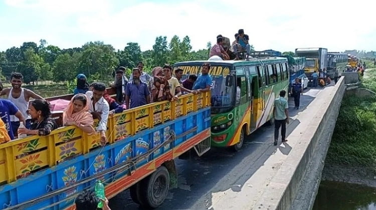 পোশাক শিল্প কারখানা খোলায় শুক্রবার হাজার হাজার শ্রমিক কর্মস্থলে ফিরতে শুরু করেছে। একারণে সড়কে অতিরিক্ত গাড়ির চাপ বেড়েছে। অনেকেই বাসে যেতে না পারে খোলা ট্রাকে করে গন্তব্যে ফিরছেন। এদিকে যানজটের কারণে সড়কে ঘণ্টার পর ঘণ্টা দাঁড়িয়ে রয়েছে যানবাহন। ভোগান্তিতে পড়েছেন যাত্রীরা তীব্র গরমের মাঝে।