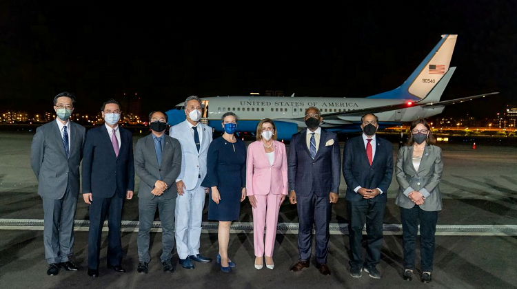 তাইওয়ানের সংবাদমাধ্যম তাইওয়ান নিউজ জানিয়েছে, স্থানীয় সময় রাত ১০টা ৪৪ মিনিটে পেলোসি এবং তার কংগ্রেস প্রতিনিধিদল ইউএস এয়ার ফোর্সের বোয়িং সি-৪০সি তে করে তাইপেই সোনশান বিমানবন্দরে পৌঁছান।