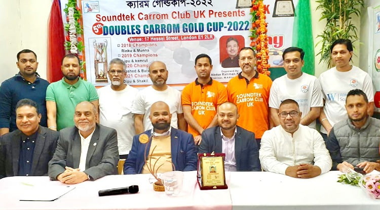 সাউন্ডটেক ক্যারাম ক্লাব আয়োজিত এই গোল্ডকাপের ড্র এর শুভ উদ্বোধন করেন লন্ডন ব্যুরো অফ টাওয়ার হ্যামলেটেস কাউন্সিলের কেবিনেট মেম্বার ও সাবেক ডেপুটি মেয়র কাউন্সিলর আ ম অহিদ আহমদ ও অন্যান্য অতিথিবৃন্দ।