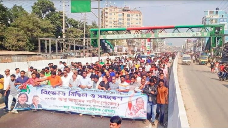 শ্লোগানে মুখরিত মহাসড়ক। দলে দলে যোগদান করে সমাবেশকে পূর্ণতা দিচ্ছেন স্থানীয় নেতাকর্মীরা।
