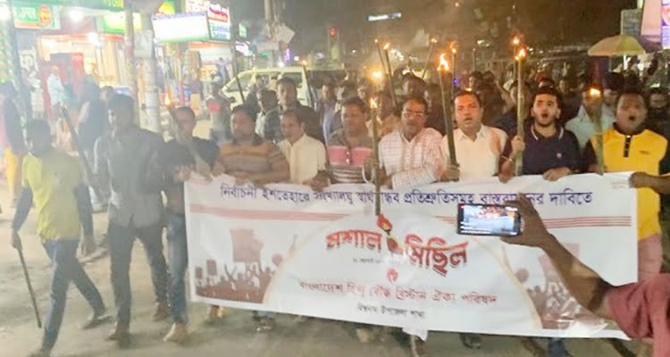 সাত দফা’ দাবী বাস্তবায়নে বিশ্বনাথে হিন্দু বৌদ্ধ খ্রিস্টান ঐক্য পরিষদের মশাল মিছিল