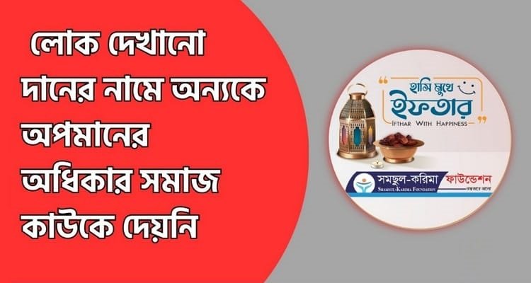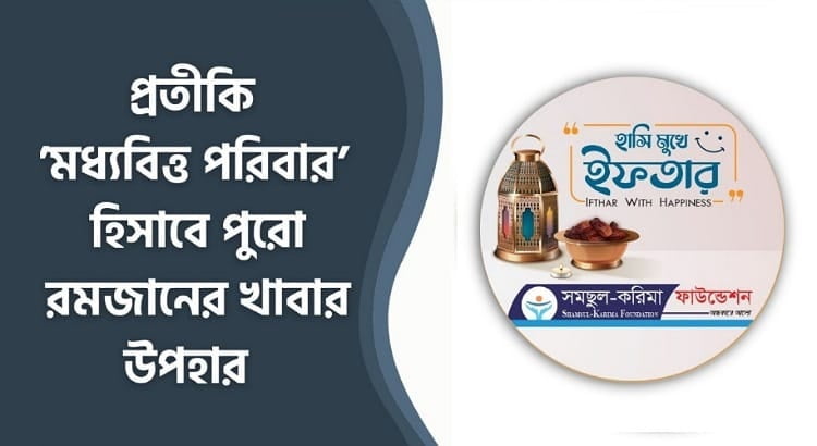 সমছুল- করিমা ইসলাম ফাউন্ডেশন ‘হাসি মুখে ইফতার’ প্রজেক্টে – প্রতিটি পরিবারকে প্রতীকি ‘মধ্যবিত্ত পরিবার’ হিসাবে বিবেচনায় রেখে, একজন মধ্যবিত্ত পরিবারের যেভাবে রমজান মাসের ইফতার ও সেহরী খাওয়া হয়, সেভাবেই প্রয়োজনীয় খাদ্য সামগ্রী কিনে দেয়া হয়। যাতে করে পবিত্র রমজানে একজন স্বচ্ছল পরিবারের মতো এইসব দরিদ্র মানুষ নিশ্চিন্তে রমজানে আনন্দ নিয়ে প্রয়োজনীয় খাবার খেয়ে রোজা রাখতে পারেন।