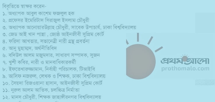 প্রথম আলো ও সংবাদপত্রের স্বাধীনতার পক্ষে ১১৭ বিশিষ্ট নাগরিকের বিবৃতি