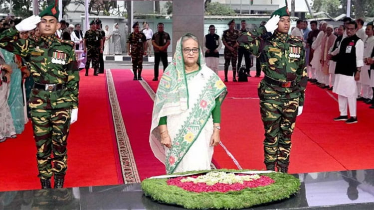মুজিবনগর দিবস: বঙ্গবন্ধুর প্রতিকৃতিতে প্রধানমন্ত্রীর শ্রদ্ধা