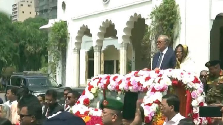 বঙ্গভবনের কর্মকর্তা-কর্মচারীরা বঙ্গভবন গেট থেকে সারিবদ্ধভাবে দাঁড়ান। মাঝখান দিয়ে খোলা জিপে করে বিদায়ী রাষ্ট্রপতি যান। তার খোলা জিপে ফুলের পাপড়ি ছুঁড়ে তাকে বিদায় জানানো হয়। এরপর সেখান থেকে বিদায়ী রাষ্ট্রপতিকে শেষবারের মতো মোটর শোভাযাত্রায় নিকুঞ্জের বাসভবনে নিয়ে যাওয়া হয়।