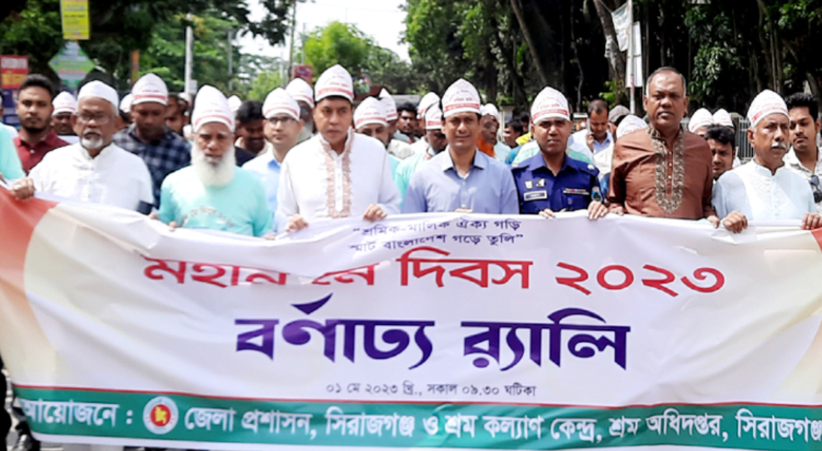 সোমবার (১ মে) সকালে সিরাজগঞ্জ জেলা প্রশাসন ও শ্রম কল্যাণ কেন্দ্র, শ্রম অধিদপ্তরের আয়োজনে জেলা প্রশাসকের কার্যালয়ের সামনে র্যালির ও শহিদ এ.কে শামসুদ্দিন সম্মেলন কক্ষে আলোচনা সভা আয়োজন করে। এসময় বিভিন্ন শ্রমিক সংগঠনের ব্যানারে শ্রমিক নেতারা র্যালি ও আলোচনা সভায় অংশ গ্রহণ করেন।