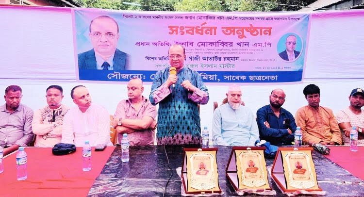 তিনি শনিবার (১৭ জুন) দুপুরে সিলেটের বিশ্বনাথে উপজেলার দশঘর গ্রামে যুক্তরাজ্য যুবলীগ নেতা রুবেল মিয়ার সৌজন্যে আয়োজিত নিজের (এমপি) সংবর্ধনা অনুষ্ঠানে প্রধান ও সংবর্ধিত অতিথির বক্তব্যে একথাগুলো বলেন। অনুষ্ঠানে আলোচনা সভা শেষে প্রধান অতিথি, বিশেষ অতিথি ও আয়োজককে সম্মাননা স্মারক প্রদান করা হয়।