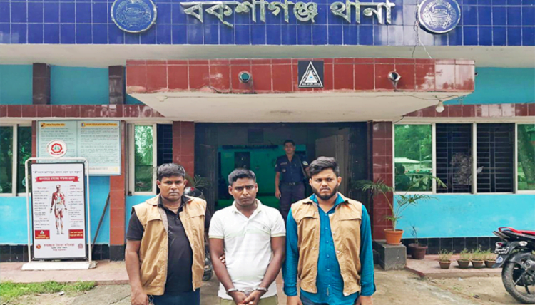 সোমবার রাতে বকশীগঞ্জ থানা পুলিশ অভিযান চালিয়ে সাধুরপাড়া ইউনিয়নের মধ্য ধাতুয়াকান্দার নিজ বাড়ি থেকে তাকে গ্রেপ্তার করে। গ্রেপ্তারকৃত নয়ন ওই এলাকার সানোয়ার হোসেনের ছেলে।