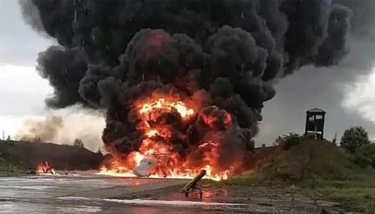 সোশ্যাল মিডিয়ায় পোস্ট করা এবং বিবিসি-র যাচাইকৃত ছবিতে দেখা গেছে, সেন্ট পিটার্সবার্গের দক্ষিণে সোলটসি-২ বিমানঘাঁটিতে একটি টুপেলভ টিইউ-২২ জঙ্গিবিমানে আগুন লেগেছে।