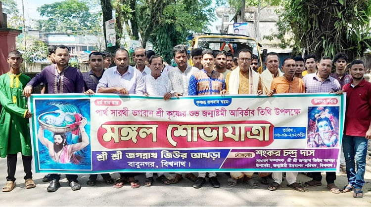 বিশ্বনাথ প্রতিনিধি: সিলেটের বিশ্বনাথে উপজেলার খাজাঞ্চী ইউনিয়নের ‘শ্রীশ্রী জগন্নাথ জিউর আখড়া বাবুনগর’র উদ্যোগে পরমেশ্বর ভগবান শ্রীকৃষ্ণের ৫২৪৯তম শুভ জন্মাষ্টমী মহোৎসব উদযাপন করা হয়েছে। সংগঠনটি র্যালীসহকারে জন্মাষ্টমী পালনের লক্ষে উপজেলা শ্রীশ্রী কৃষ্ণের জন্মাষ্টমী উদযাপন পরিষদের উদ্যোগে আয়োজিত আলোচনা সভা ও শোভাযাত্রায় অংশগ্রহন করে।