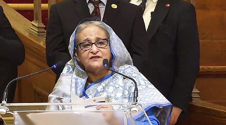 বক্তব্য রাখছেন প্রধানমন্ত্রী শেখ হাসিনা
