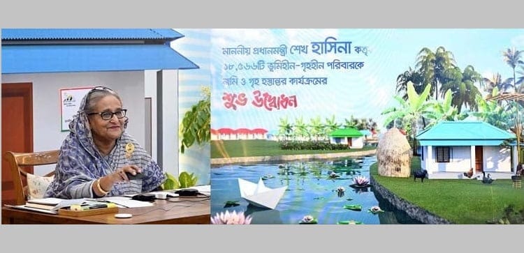শেখ হাসিনা আজ সকালে তাঁর সরকারি বাসভবন গণভবন থেকে ভিডিও কনফারেন্সের মাধ্যমে যুক্ত হয়ে লালমনিরহাটের কালীগঞ্জ, কক্সবাজারের ঈদগাঁও এবং ভোলার চরফ্যাশন উপজেলার সুবিধাভোগীদের কাছে জমির মালিকানা দলিলসহ বাড়ি হস্তান্তর কার্যক্রমের শুভ উদ্বোধন করেন।