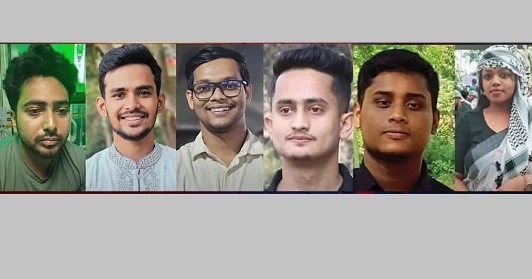 বিবৃতি পাঠানো ছয় সমন্বয়ক হলেন, মো. নাহিদ ইসলাম, সারজিস আলম, হাসনাত আব্দুল্লাহ, আসিফ মাহমুদ, নুসরাত তাবাসসুম ও আবু বাকের মজুমদার।
