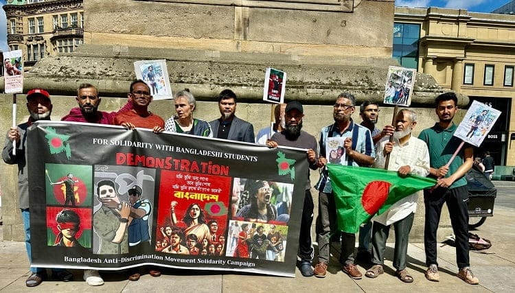 লন্ডন অফিস: বাংলাদেশের বর্তমান ছাত্র বিক্ষোভে হত্যার প্রতিবাদে উত্তর-পূর্বে ইংল্যান্ডের নিউক্যাসলে বাংলাদেশ বৈষম্যবিরোধী ছাত্র আন্দোলন সমাবেশের আয়োজন করা হয়েছে। শনিবার দুপুর ১২টায় সিটি সেন্টারে নিউক্যাসল মনুমেন্টে এই বিক্ষোভ সমাবেশ অনুষ্ঠিত হয়। বিভিন্ন সম্প্রদায় থেকে অনেক বিক্ষোভকারী এতে অংশ গ্রহণ করে। এতে তারা বলেছে, ক্ষমতাসীন আওয়ামী লীগের হামলায় ঢাকা বিশ্ববিদ্যালয় ও অন্যান্য শিক্ষাপ্রতিষ্ঠানে ৫ শতাধিক শিক্ষার্থী নিহত এবং হাজার হাজার আহত হয়েছে।