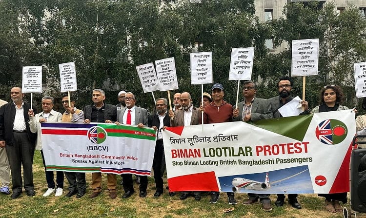 লন্ডন অফিস: লন্ডনের আলতাব আলী পার্কে ২২ আগস্ট বৃহস্পতিবার বিকালে ব্রিটিশ বাংলাদেশি এবং প্রবাসী বাংলাদেশীদের প্রতি বিমান বাংলাদেশ এয়ারলাইন্সের টিকেটের মূল্যবৈষম্য এবং সিলেট ওসমানী বিমানবন্দরকে একটি পূর্ণাঙ্গ আন্তর্জাতিক বিমানবন্দর হিসাবে রূপদানের মাধ্যমে অন্যান্য বিদেশী এয়ারলাইন্সের ফ্লাইট চালুসহ অন্যান্য দাবিতে ব্রিটিশ বাংলাদেশি কমিউনিটি ভয়েস ইউ.কে ‘লুটিলার’ প্রতিবাদ সভা করেছে।