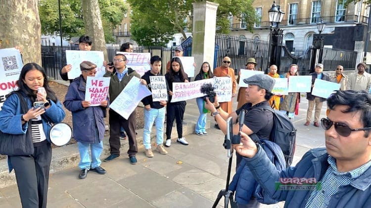আদিবাসীদের উপর অত্যাচার বন্ধ ও স্বায়ত্তশাসনের দাবিতে লন্ডনে প্রতিবাদ