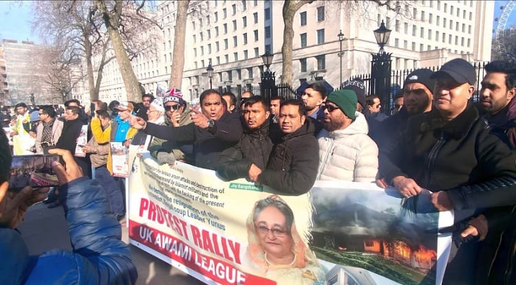 লন্ডন: অবৈধভাবে বাংলাদেশের রাষ্ট্রক্ষমতা দখলকারী ড. ইউসুসের নেতৃত্বাধীন সরকারের পদত্যাগ, দেশব্যাপী জঙ্গি হামলা, বোলডোজার দিয়ে বাড়ীঘর ধ্বংস, আওয়ামীলগীগসহ মুক্তমনা নীরিহ নাগরিকদের হয়রানি, কারণ ছাড়া হাজার হাজার মানুষকে গ্রেফতার ও সরকারের প্রত্যক্ষ মদদে দেশব্যাপী জঙ্গি উত্থান ঠেকাতে ব্রিটিশ সরকার ও আন্তর্জাতিক সম্প্রদায়ের হস্থক্ষেপ কামনা করে ব্রিটিশ প্রধানমন্ত্রীর অফিস ১০নং ডাউনিং ষ্ট্রীটের সামনে প্রতিবাদ সমাবেশ করেছে যুক্তরাজ্য আওয়ামীলীগ ও সাধারন বিটিশ বাংলাদেশীরা।
