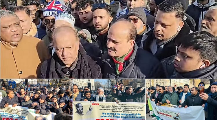 বাংলাদেশে মব জাষ্টিস, জঙ্গি উত্থান ও অন্তবর্তি সরকারের পদত্যাগের দাবিতে ব্রিটিশ প্রধানমন্ত্রীর অফিসের সামনে বিক্ষোভ সমাবেশ