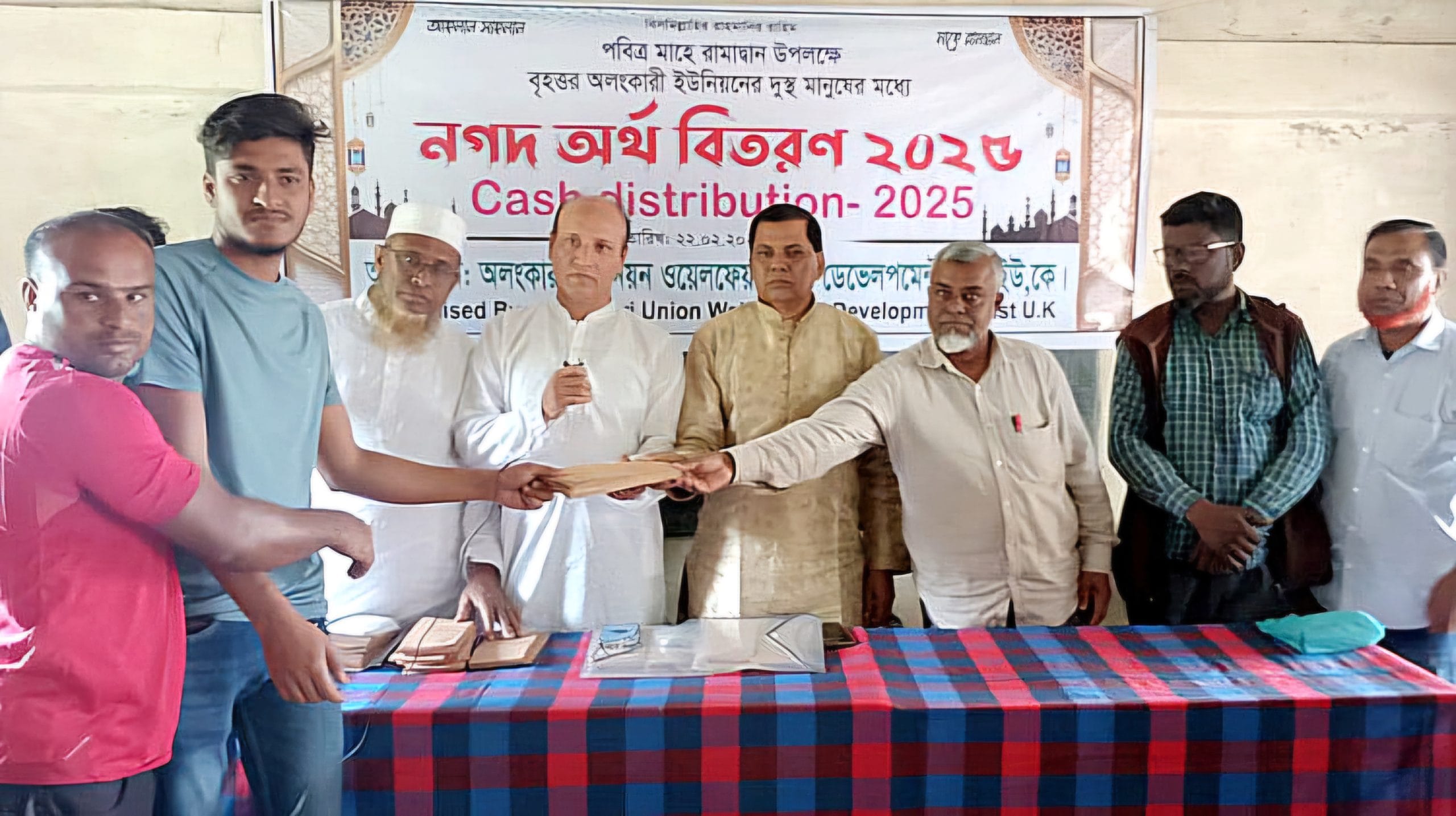 ‘অলংকারী ইউনিয়ন ওয়েলফেয়ার ডেভেলপমেন্ট ট্রাস্ট ইউকে’র নগদ অর্থ পেল ৫৫০ পরিবার