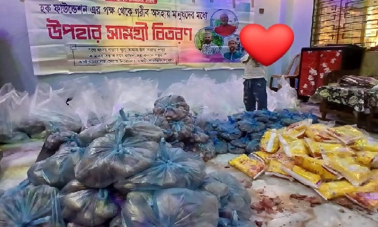 মুহতামিম মাষ্টার আব্দুল করিমের সুস্থতা কামনায় ‘হক ফাউন্ডেশনের’ খাদ্য সামগ্রী বিতরণ