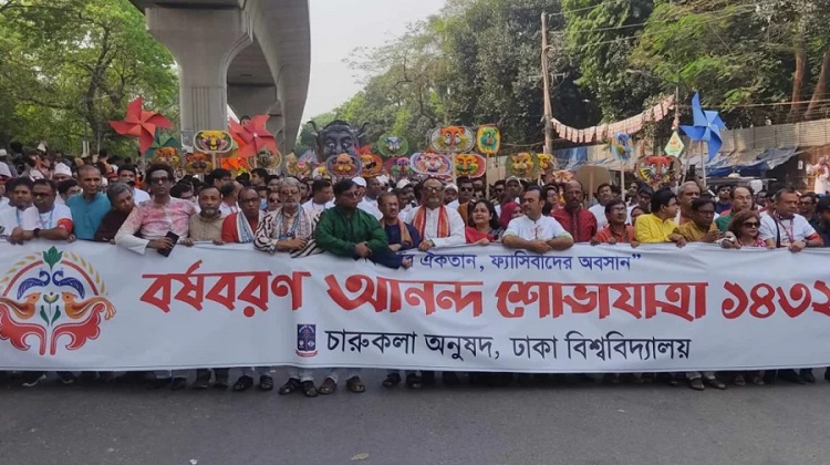‘নববর্ষের ঐকতান, ফ্যাসিবাদের অবসান’ প্রতিপাদ্যে আয়োজিত এই শোভাযাত্রার নেতৃত্ব দেন ঢাকা বিশ্ববিদ্যালয়ের উপাচার্য অধ্যাপক ড. নিয়াজ আহমদ খান।