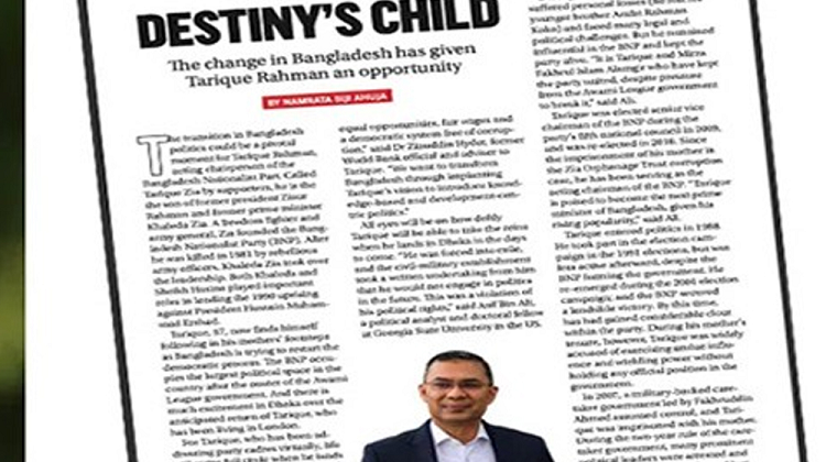 পত্রিকার নয়াদিল্লি ব্যুরো চিফ নম্রতা বিজি আহুজা–র লেখা প্রতিবেদনে বলা হয়েছে, আওয়ামী লীগ সরকারের বিএনপি ভাঙার প্রচেষ্টার বিপরীতে তারেক রহমানের নেতৃত্বেই দলটি ঐক্যবদ্ধ রয়েছে। প্রতিবেদনে আরও উল্লেখ করা হয়েছে, দিন দিন তার জনপ্রিয়তা বাড়ছে এবং তিনি আগামী দিনে প্রধানমন্ত্রী হওয়ার পথে রয়েছেন।