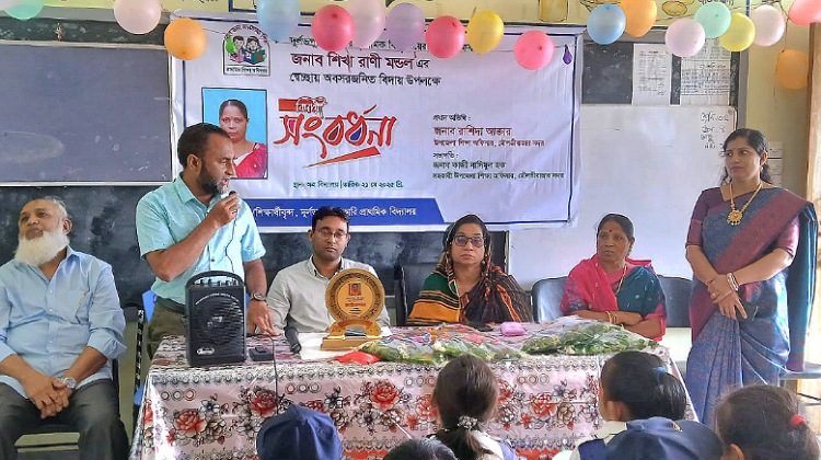 বিদায়ী প্রধান শিক্ষক শিখা রানী মন্ডল, বিদ্যালয় এসএমসির সাবেক সভাপতি দাতা সদস্য রুমেল আহমদ, নজরুল ইসলাম, আশরাফুল ইসলাম খোকন, আহমেদ ময়নু প্রমুখ বক্তব্য রাখেন।
