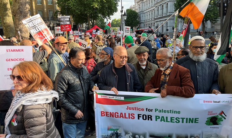 বিক্ষোভে উপস্থিত শত শত বিক্ষোভকারীদের মধ্যে ছিলেন ‘বাঙালিরা প্যালেস্টাইনের জন্য’-এর সদস্যরা, যাদের মধ্যে ছিলেন রাজনুদ্দিন জালাল, আকিকুর রহমান, নূরউদ্দিন আহমেদ, তৈমুস আলী, আনসার আহমেদ উল্লাহ, জয়নাল আহমেদ, শফিক আহমেদ, আহমেদ ফকর কামাল, সয়ফুল আলম, এম. এল. মিয়া, মুফতি আব্দুল ওয়াদুদ লতিফি, জামিল ইকবাল এবং সুন্দর মিয়া। এই আন্দোলনের সাথে একাত্মতা প্রকাশ করে তারা ইসরায়েলের সাথে সমস্ত অস্ত্র ব্যবসা এবং সামরিক সহযোগিতা বন্ধ করার জন্য সামরিক নিষেধাজ্ঞা, ইসরায়েলের সাথে সমস্ত বাণিজ্য আলোচনা বন্ধ এবং আন্তর্জাতিক আইন লঙ্ঘনে সহায়তা করে এমন সমস্ত বাণিজ্যের উপর সম্পূর্ণ নিষেধাজ্ঞা এবং বেঞ্জামিন নেতানিয়াহু সহ ইসরায়েলি সরকারের সকল মন্ত্রীর বিরুদ্ধে ভ্রমণ নিষেধাজ্ঞা এবআরোপের দাবি জানিয়েছেন ।