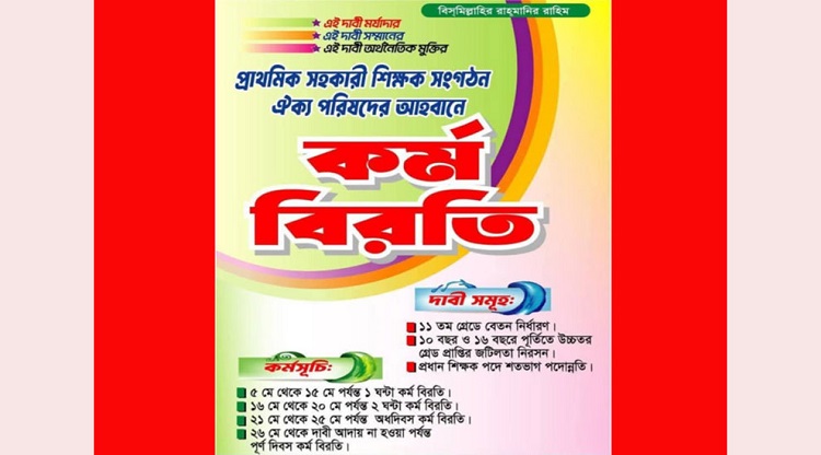 এর পূর্বে ‘প্রাথমিক সহকারী শিক্ষক সংগঠন ঐক্য পরিষদ’র ব্যানারে গত ৫-১৫ মে পর্যন্ত প্রত্যেক প্রত্যেক কর্ম দিবসে ১ ঘণ্টা করে কর্ম বিরতি, ১৬-২০ মে পর্যন্ত প্রত্যেক প্রত্যেক কর্ম দিবসে ২ ঘণ্টা করে কর্ম বিরতি এবং ২১-২৫ মে পর্যন্ত প্রত্যেক প্রত্যেক কর্ম দিবসে অর্ধ দিবসে কর্ম বিরতি পালন করেছেন প্রাথমিকের শিক্ষকরা।