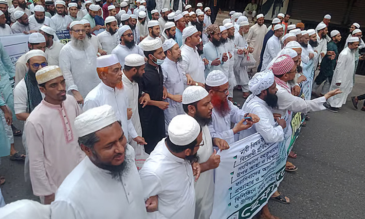 নারীবিষয়ক সংস্কার কমিশনের কোরআনবিরোধী প্রতিবেদন ও কমিশন বাতিল; সংবিধানে বহুত্ববাদের পরিবর্তে আল্লাহর ওপর আস্থা ও বিশ্বাস পুনর্বহাল; ফ্যাসিবাদের আমলে দায়েরকৃত সব মিথ্যা মামলা প্রত্যাহার, শাপলা চত্বরসহ সব গণহত্যার বিচার; ফিলিস্তিনে এবং ভারতে মুসলিম গণহত্যা ও নিপীড়ন বন্ধের দাবিতে আগামীকাল শনিবার রাজধানীর সোহরাওয়ার্দী উদ্যানে আয়োজিত মহাসমাবেশ সফলের লক্ষ্যে বিক্ষোভ সমাবেশটির আয়োজন করে হেফাজতে ইসলাম বাংলাদেশের পল্টন জোন।