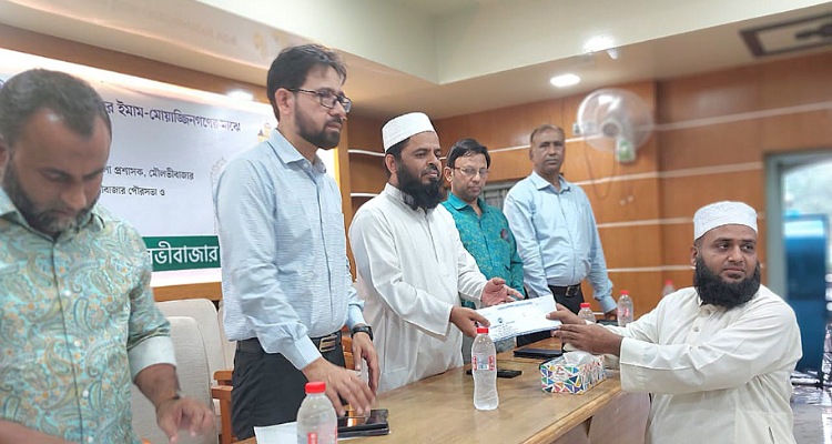মৌলভীবাজার পৌরসভাধীন মসজিদ সমুহের ইমাম-মোয়াজ্জিনগণের মাঝে ঈদ উপহার প্রদান