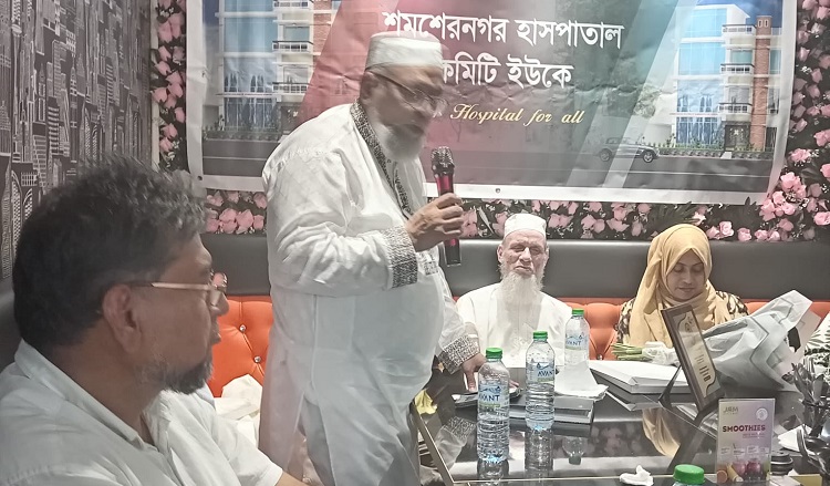 রবিবার (২৯ জুন) বৃটেনের বেথনাল গ্রীন চটপটি লাউঞ্জে শমশেরনগর হাসপাতাল ইউকে কমিটির আয়োজনে সম্বর্ধনা অনুষ্ঠানে সভাপতিত্ব করেন হাসপাতাল কমিটির সভাপতিমণ্ডলীর সদস্য এ.কে.এম জিল্লুল হক।