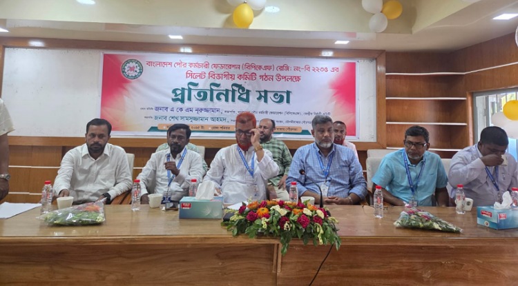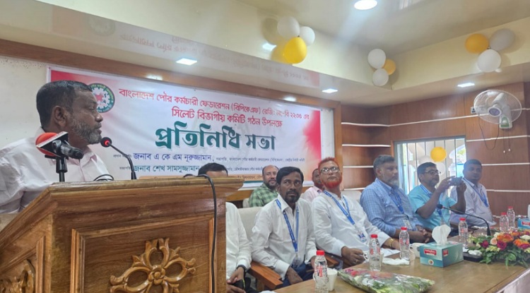 শনিবার (১৯ জুলাই) সকাল ১১টায় মৌলভীবাজার পৌরসভা মিলনায়তনে বাংলাদেশ পৌর কর্মচারী ফেডারেশন (বিপিকেএফ) এর সিলেট বিভাগীয় কমিটি গঠন উপলক্ষে প্রতিনিধি সভায় মৌলভীবাজার পৌর কর্মচারী সংসদের সভাপতি ও বিপিকেএফ কেন্দ্রীয় দপ্তর সম্পাদক শেখ সামছুজ্জামান আহমদের সভাপতিত্বে প্রধান অতিথি ছিলেন বিপিকেএফ কেন্দ্রীয় নির্বাহী কমিটির সভাপতি এ.কে.এম. নুরুজ্জামান।