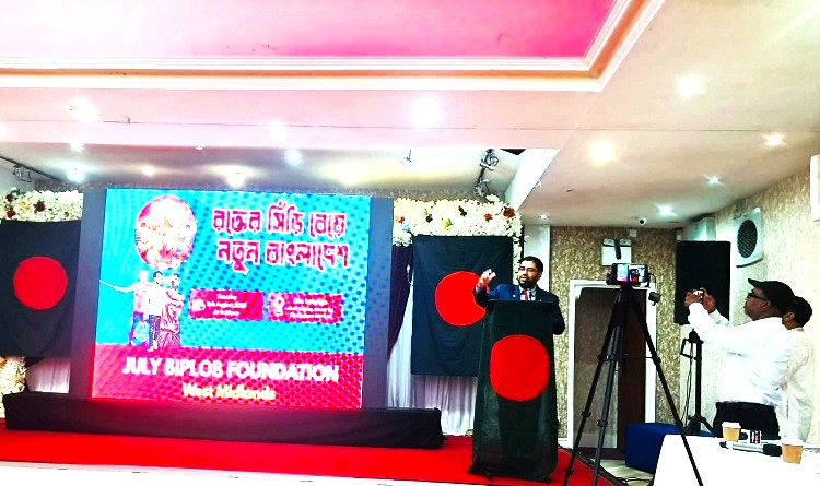 বার্মিংহামে জুলাই বিপ্লব ফাউন্ডেশন ওয়েস্ট মিডল্যান্ড এর আহবায়ক শাইখ এটিএম মোকাররম হাসান এর সভাপতিত্বে এবং ওমর ফারুক টিপু ও সলিসিটর মাসুম আহমদের যৌথ সঞ্চালনায় এতে বিশেষ অতিথি হিসেবে বক্তব্য রাখেন বিশিষ্ট সাংবাদিক অলিউল্লাহ নোমান, বিশিষ্ট সংগঠক ও সমাজসেবী সৈয়দ জামিরুল ইসলাম বাবু, আন্তর্জাতিক আইন বিশেষজ্ঞ মো: আমিনুল হক চৌধুরী, মানবাধিকার সংগঠক আমিনুল ইসলাম মাহমুদ। এ ছাড়া মিডল্যান্ডের কমিউনিটি নেতৃবৃন্দ, রাজনৈতিক নেতৃবৃন্দ, শিক্ষাবিদ ও ওলামায়ে কেরামরা বক্তব্য রাখেন। বাংলাদেশ হাই কমিশন বার্মিংহামের সহকারী হাইকমিশনার মোঃ আলিমুজ্জামান রেকর্ডেড ম্যাসেজ পাঠান। লাইভে বিশেষ অতিথি হিসেবে যোগ দেন ফ্রান্স থেকে বিশিষ্ট অনলাইন এক্টিভিষ্ট ও ইনফ্লোয়েন্সার ডা: পিনাকী ভট্টাচার্য ও ঢাকা থেকে গণঅভ্যুত্থানের অন্যতম সংগঠক সাদেক কাইয়িম। অনুষ্ঠানের ফাঁকে ফাঁকে সাংস্কৃতিক শিল্পীগোষ্টী চমৎকার গান, সঙ্গীত ও পরিবেশনা উপস্থাপন করেন।