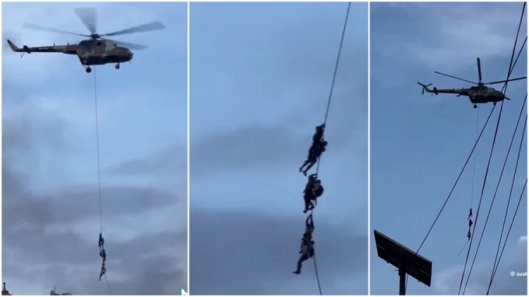 হেলিকপ্টারের দড়িতে ঝুলে যেভাবে নেপালের মন্ত্রীরা পালালেন (ভিডিও)