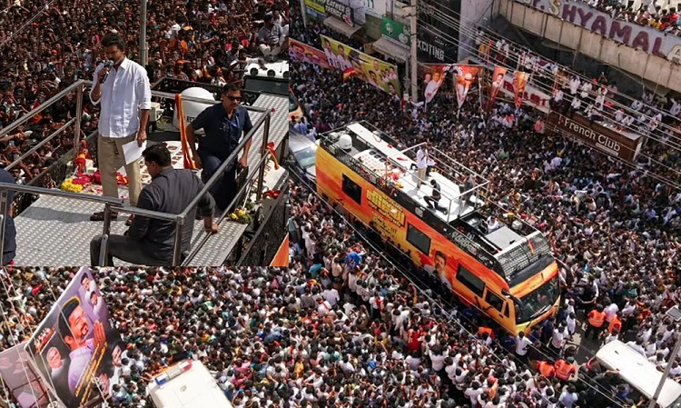 গত বছরও বিজয়ের প্রথম রাজনৈতিক সমাবেশে অন্তত ৬ জনের মৃত্যুর ঘটনা ঘটেছিল বলে স্থানীয় সংবাদমাধ্যম জানিয়েছিল। পুলিশের আরোপিত বিধিনিষেধ সত্ত্বেও তাঁর সমাবেশগুলোতে বিপুল জনসমাগম স্থানীয় অবকাঠামোকে বারবার বিপর্যস্ত করছে।