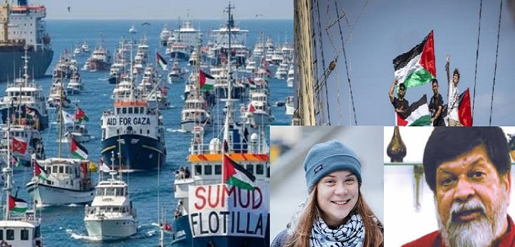 গ্লোবাল সুমুদ ফ্লোটিলা, নেতৃত্বে গ্রেটা থুনবার্গ। এটাকে কখনো কখনো গ্লোবাল ফ্রিডম ফ্লোটিলা নামেও উল্লেখ করা হয়, এটি একটি আন্তর্জাতিক, নাগরিক সমাজ-নেতৃত্বাধীন সামুদ্রিক উদ্যোগ যা ২০২৫ সালের মাঝামাঝি সময়ে চালু হয়। এর লক্ষ্য গাজা উপত্যকার ওপর ইসরায়েলি অবরোধ ভাঙা। এর নামকরণ করা হয়েছে আরবি শব্দ সুমুদ থেকে, যার অর্থ ‘অটলতা’ বা ‘সহনশীলতা’।