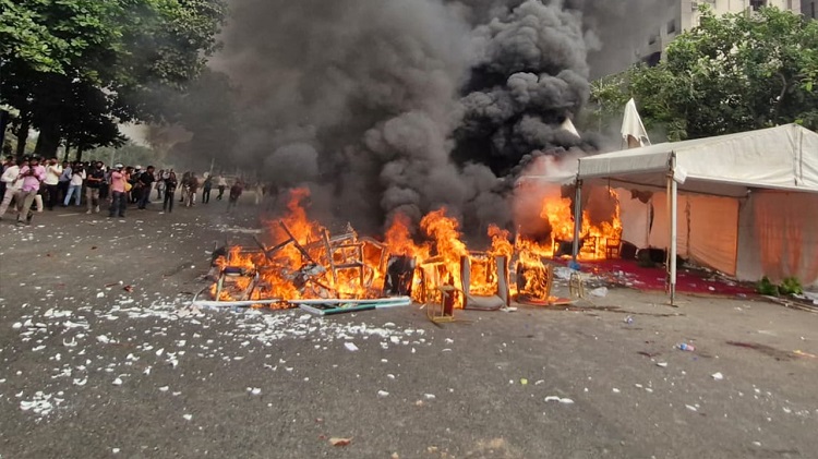 সংসদ এলাকায় ধাওয়া-পাল্টা ধাওয়া, ভাঙচুর, বিস্ফোরণ, জুলাই যোদ্ধাদের মঞ্চ দখল (ভিডিও)